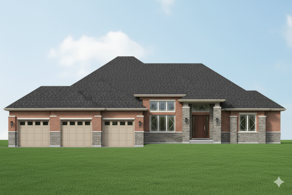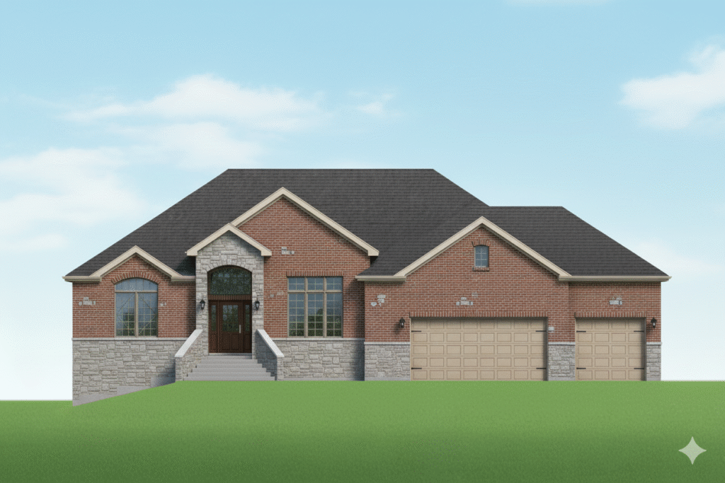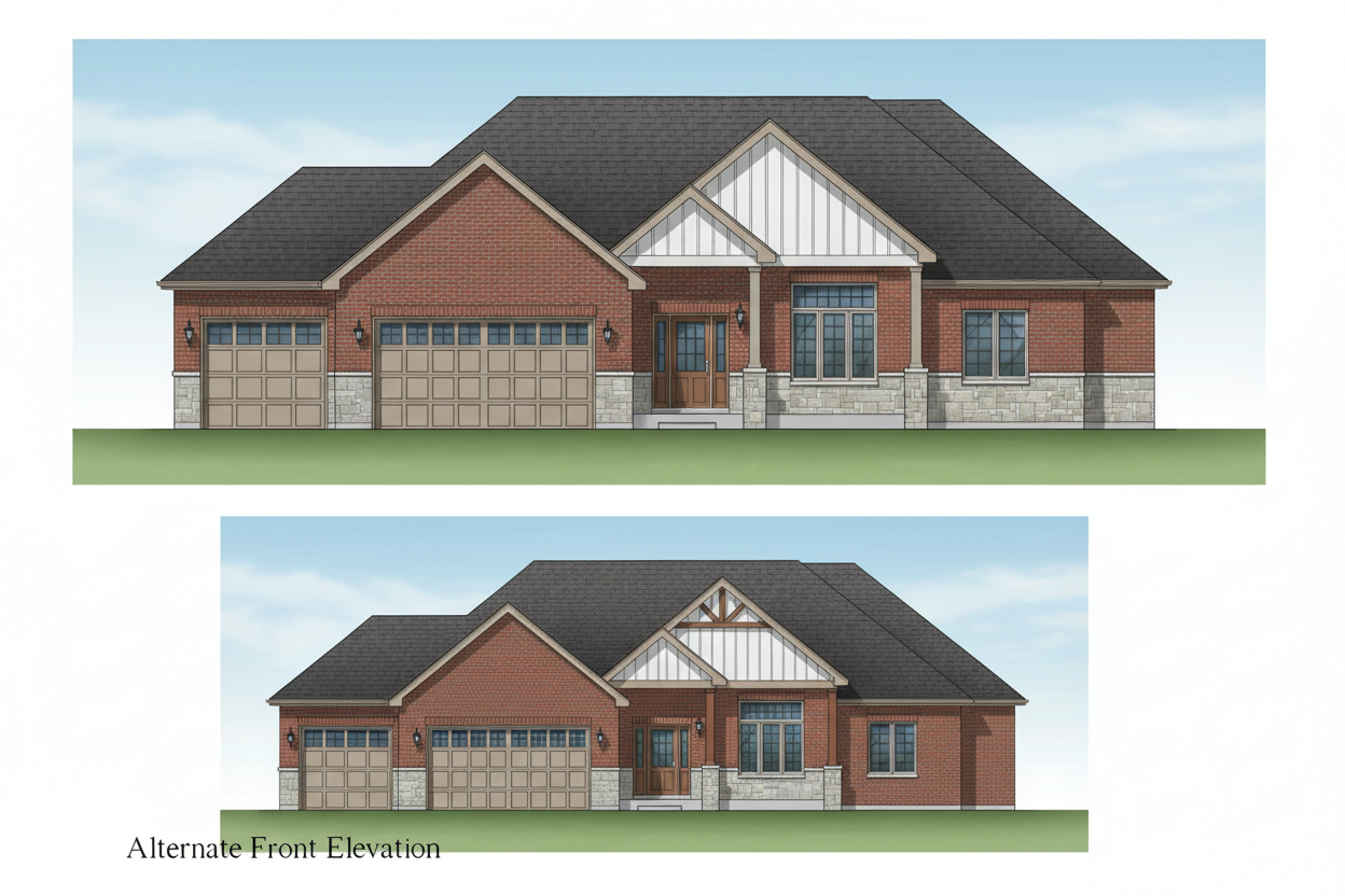 Spacious Duplex Ranch with an oversized Primary Suite with Walk-In Closet, 3 Bedrooms, 2½ Bathrooms, Vaulted Family Room, Formal Living Room, Dinette, Gourmet Kitchen with center island, private Study, Covered Deck, Laundry Room, Full Basement, Covered Front Porch, and 3-Car Garage.