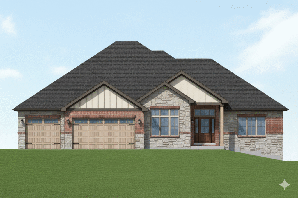 Spacious Ranch with an oversized Primary Suite with Walk-In Closet, 2 Bedrooms with private Study or optional 4th Bedroom, 2½ Bathrooms, open-concept Family Room with raised ceiling, Dinette, and a Gourmet Kitchen with center island and pantry, Covered Front Entry, Full Basement, Mudroom with Laundry, and 3-Car Garage.