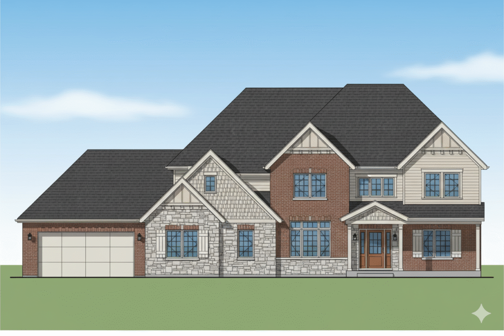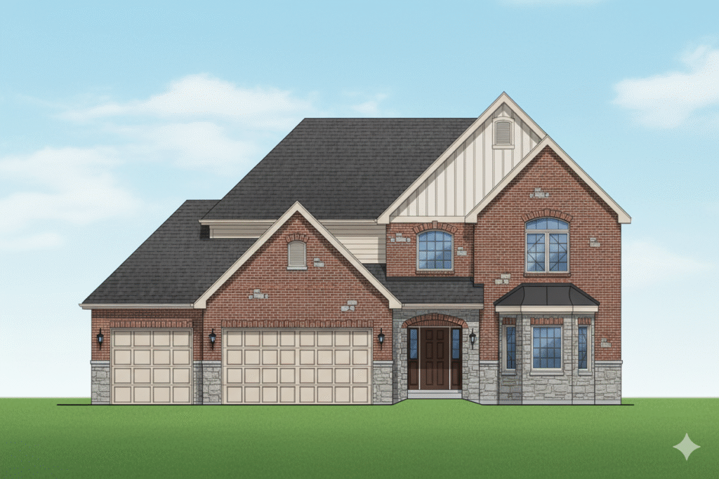 2-Story Home with an oversized Primary Suite with Sitting Nook and 2 Walk-In Closets, 4 Bedrooms, 3½ Bathrooms, expansive Great Room, Formal Dining Room, Dinette, Gourmet Kitchen with center island and pantry, Playroom, private Study, Second-Floor Laundry, open-to-below architectural detail, Screened Porch, Full Basement, and 4-Car Garage.